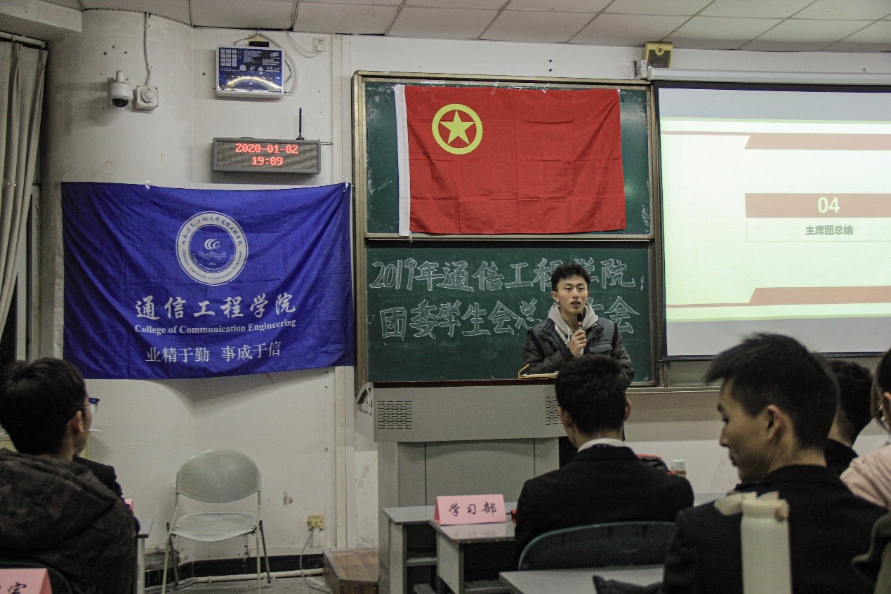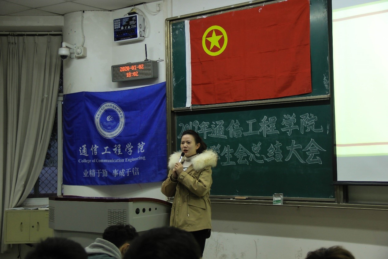 2019年12月26日晚六点,通信工程学院(微电子学院)团委学生会于4112教室召开2019年团委学生会总结大会。出席本次会议的有团委书记彭靖涵老师和团委学生会全体成员。本次大会由办公室金玥主持。