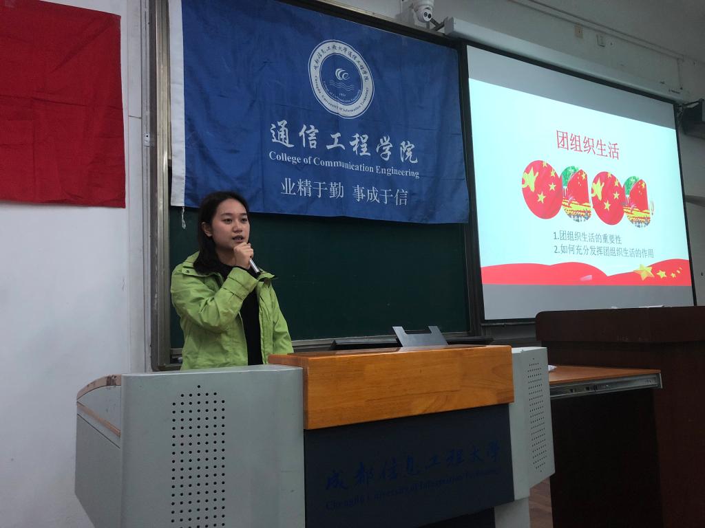 2019年11月11日晚上19点30分于1103教室通信工程学院举办本学期二级团校第一次团课。与会人员有通信工程学院团委副书记王思雨,2019级各团支部委员会成员,全学院入团积极分子,学院团委组织部学生干部。本次会议由团委组织部副部长尹毅洋主持。