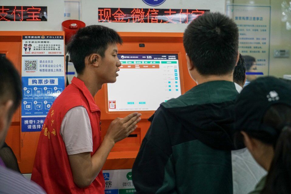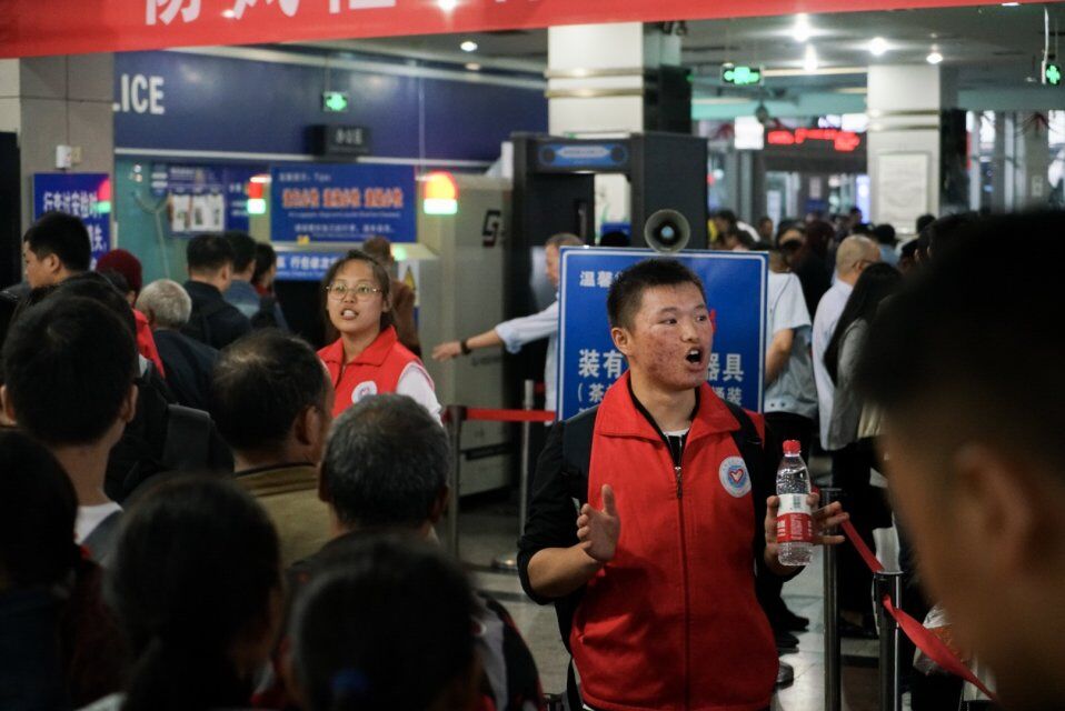十月一日我们的志愿者们带着笑容九点就到达了目的地——石羊场客运站。随后,我们按照各自分配的协助工作到达了各自的工作岗位,开始了我们的大概五个小时左右的志愿工作。这个过程中,我们帮助检票、温和的回答乘客的问题、维持乘客的秩序、协助安全检查等等,最后在我们大家的共同努力下,我们顺利的完成了这次志愿活动。
