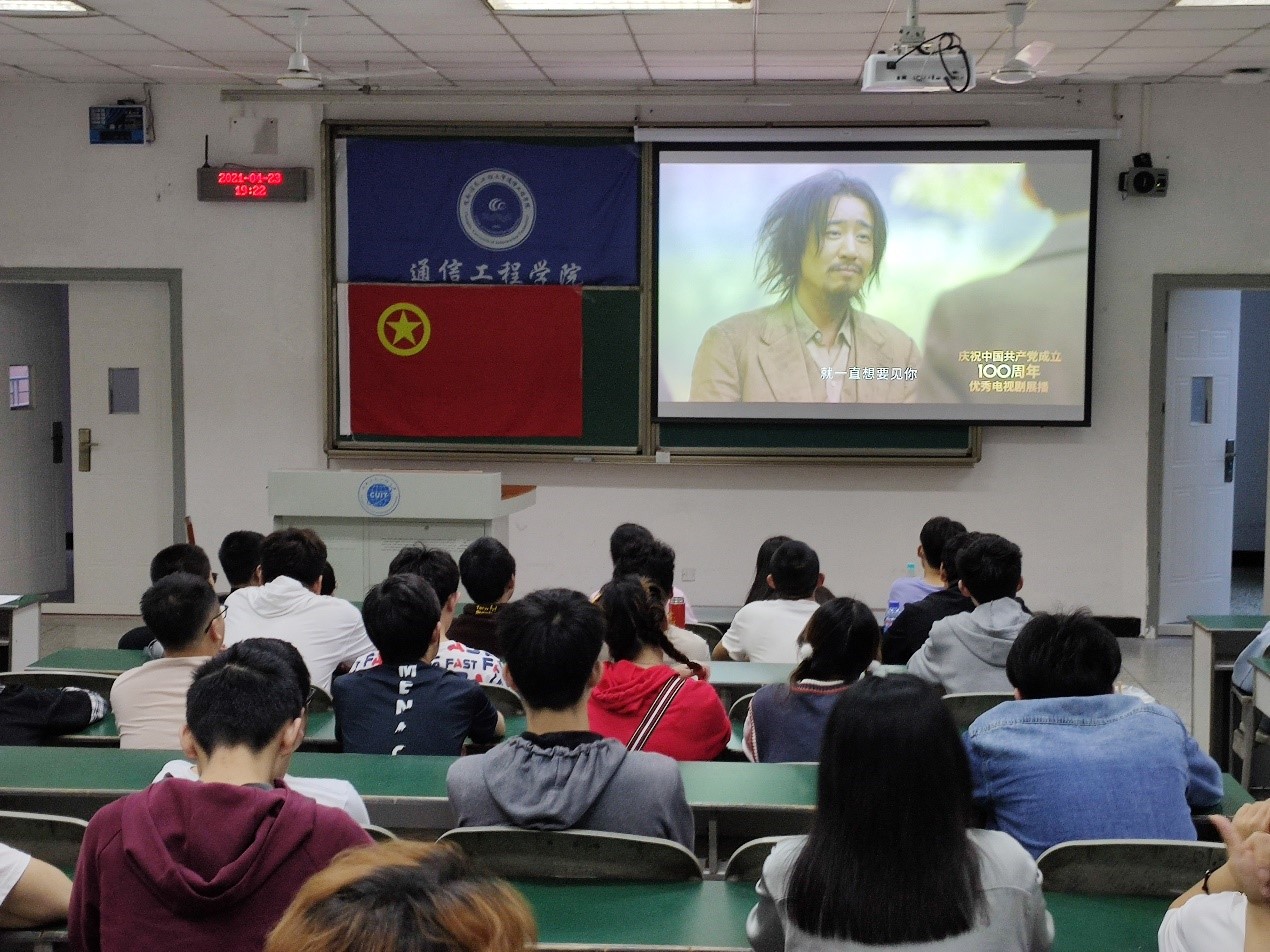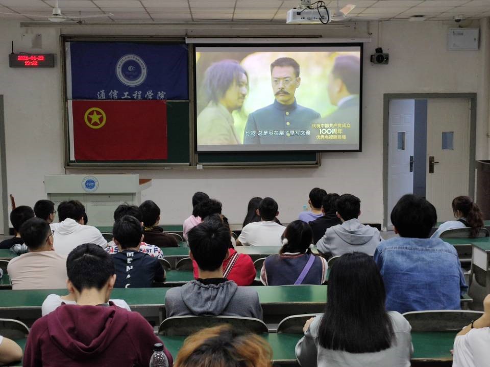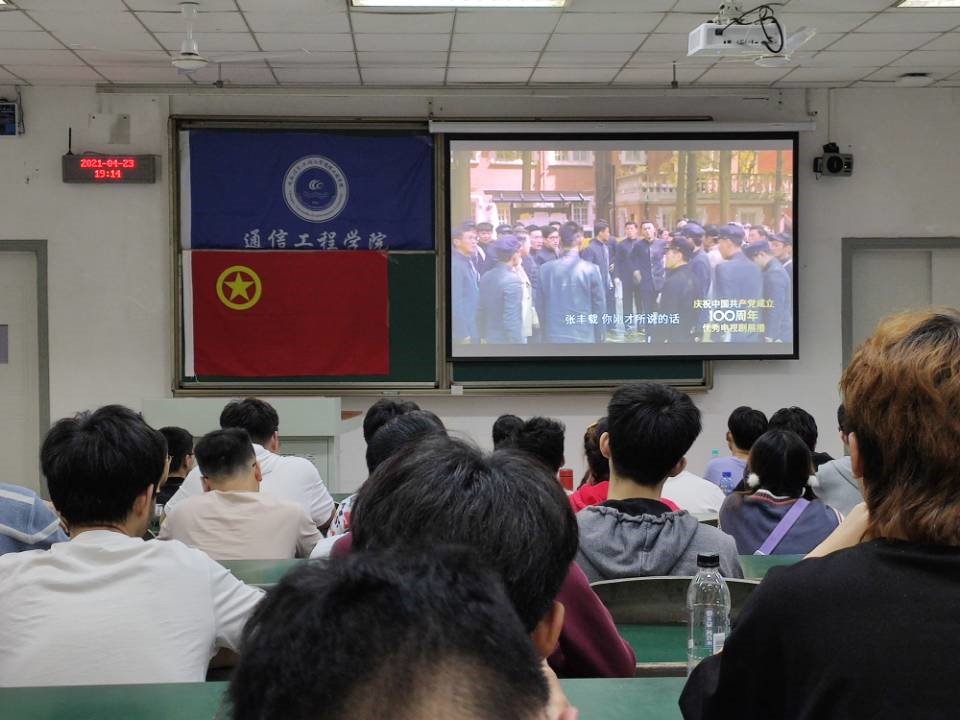 2021年4月23日晚19:00点,为进一步推动全校学生深入学好党史、新中国史、改革开放史、社会主义发展史,迎接建党100 周年,回顾党的光辉历程、讴歌党的丰功伟绩,激发全校学生爱党爱国爱校热情,构建团结、向上、和谐的校园文化氛围,通信工程学院团委组织部组织19级、20级部分同学于H2107教室举办了“学党史、强信念、跟党走”主题观影活动。