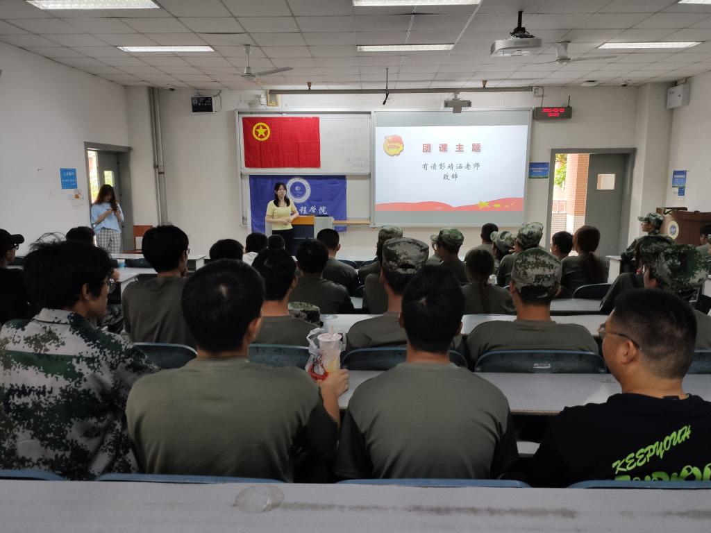 会议伊始,全体与会人员起立奏唱团歌,介绍通信工程学院二级团校校长彭靖涵老师,通信工程学院二级团校工作组组长王诗淇。