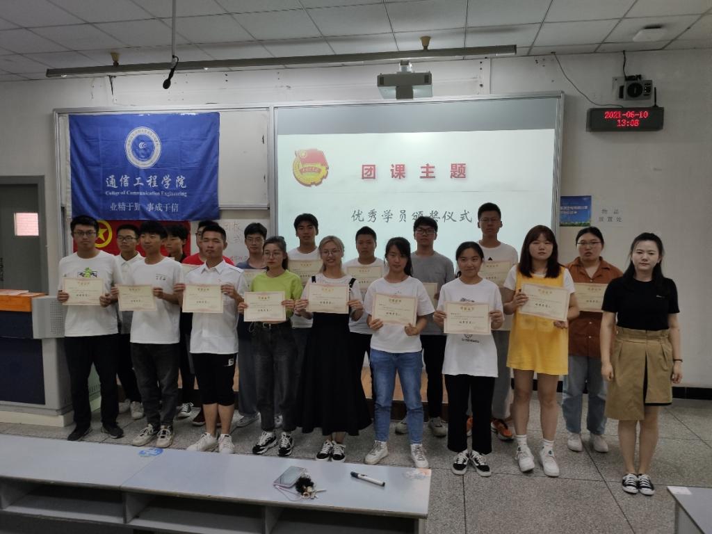 2021年06月10日中午13:00分于1107教室,通信工程学院举办本学期二级团校结业仪式。与会人员有通信工程学院二级团校校长彭靖涵、2020级各团支部委员会成员,全学院入团积极分子,学院团委组织部学生干部。本次会议由团委组织部负责人王诗淇主持。