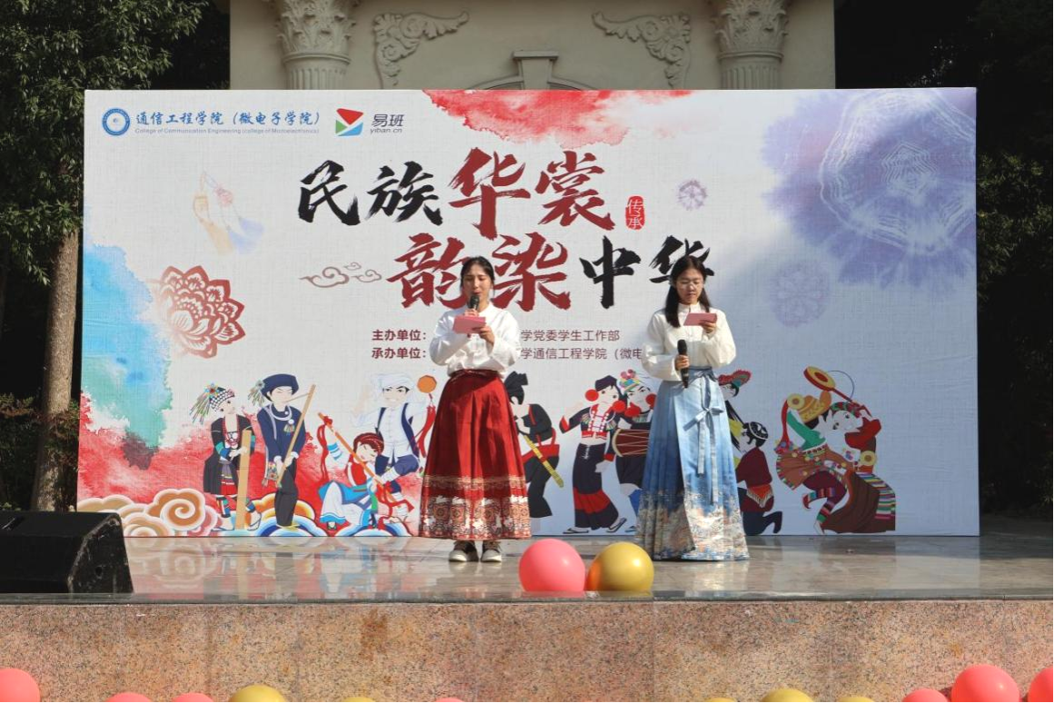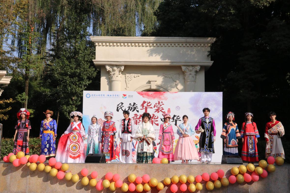 冬日暖阳,银杏满地。为传承中华民族优秀传统文化,体验非遗手作的千年韵味,以灵动的民族艺术、厚重的文化底蕴为核心,将民族服饰与青春风采深度融合。11月27日,由校党委学生工作部、易班学生工作站主办,通信工程学院(微电子学院)团委承办的“民族华裳,韵染中华”主题活动在小罗马广场如期举行。活动特邀大气科学学院团委书记张泽昊、网络空间安全学院团委书记夏焜、应用数学学院团委书记张秋敏、电子工程学院辅导员周科宇等嘉宾出席,现场两百余名师生共赏民族服饰之美,共品传统文化之韵。