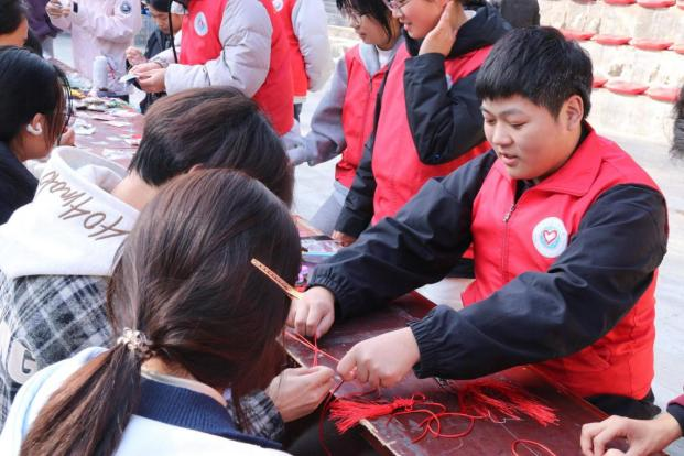 指间传艺,心中承情。走秀环节后,参与者移步至非遗体验区。在中国结、香囊、剪纸、扎染四个体验区域中,亲手制作、沉浸体验,将无形的文化记忆转化为手中的有形之物。红绳编织吉祥,香囊寄托情谊,剪纸生动传神,扎染花纹独特——在实践中感悟工匠精神,在互动中增进文化认同。