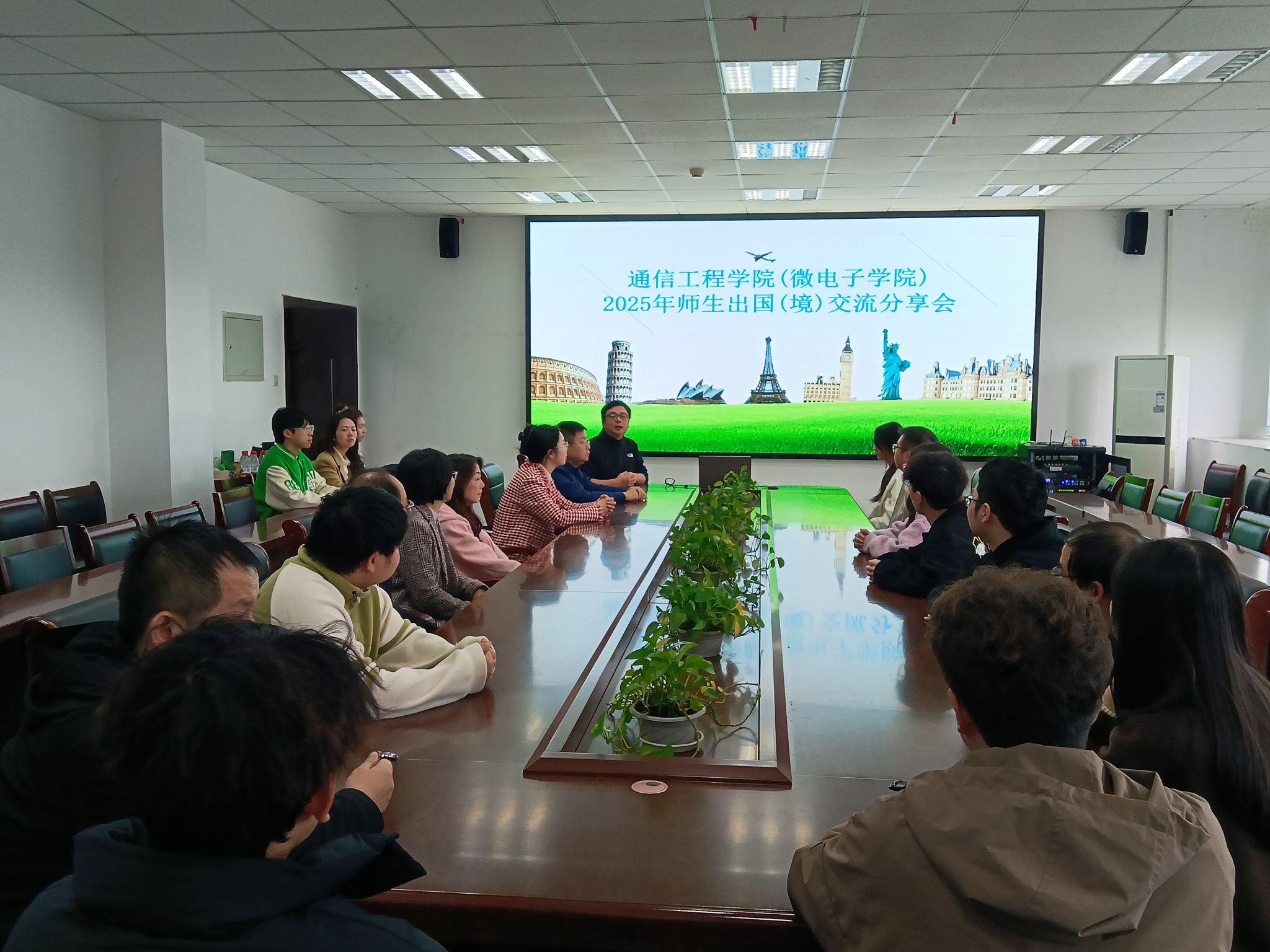 11月5日,通信工程学院(微电子学院)在信达楼A603举办了2025年“全球视野·融合发展”国际教育周学院师生出国(境)交流分享会。学院邀请了李蠡、陈功、张钟浩、曾晓辉等四位具有留学经历的教师参会,学院有出国(境)学习意愿的学生参会,会议由李蠡主持。