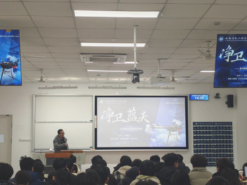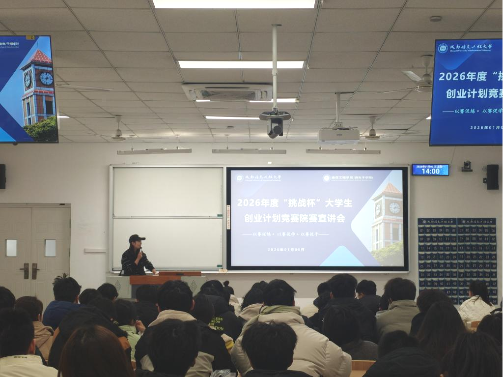 为激发学生创新创业热情,提前了解竞赛要点,科学规划备赛路径。1月5日,学院于H2106教室开展2026年度“挑战杯”大学生创业计划竞赛宣讲会,特邀校团委副书记尹欣、电子工程学院(大气探测学院)吴昊副教授作为主讲嘉宾。学院团委书记盛小芳主持,全院150余名备赛团队成员现场聆听学习。