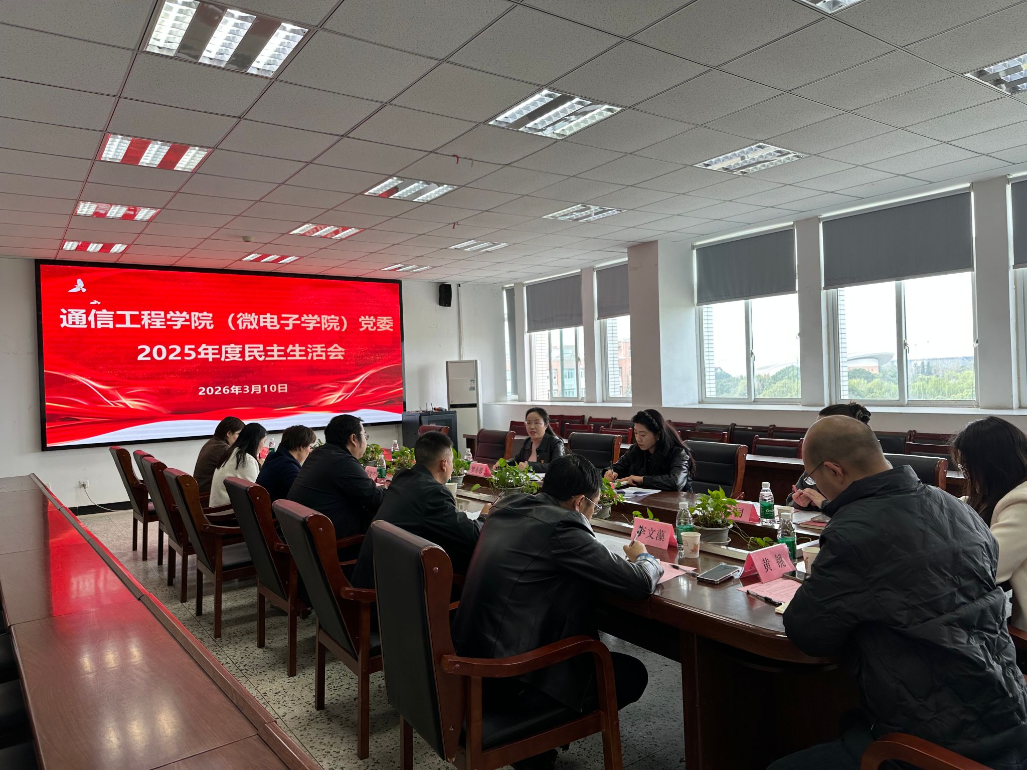 3月10日下午,通信工程学院(微电子学院)党委在信达楼A603召开2025年度党员处级领导干部民主生活会。学校党委常委、副校长罗小蓉,学校督导组许峻、徐同出席会议并作指导。学院党委书记李明、院长马文英、党委副书记刘畅、副院长薛雅娟参加会议,副院长李文藻、学院党委委员列席会议,李明主持会议。