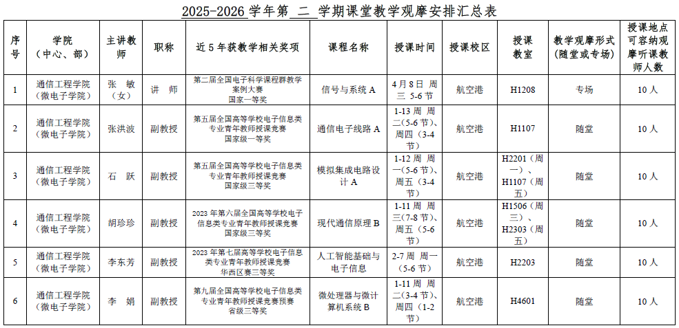 通信工程学院(微电子学院)2025-2026学年第二学期课堂教学观摩安排