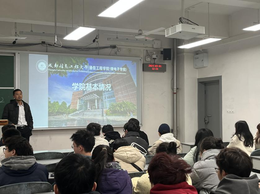 会上,刘畅介绍了学院的历史沿革、师资力量、专业设置、学科体系、科研成果等,鼓励同学们加快角色转变,尽快融入新的班级中,适应通信工程学院的课程内容设置和学习节奏。