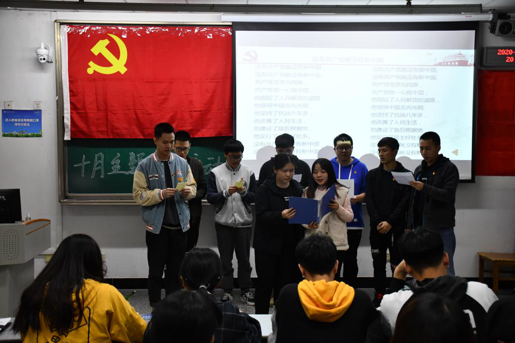 为鼓舞人心,催人奋进,深入学习践行十九大精神,通信工程学院学生党支部于10月20日在1208教室开展了“飞扬红歌情,唱响中国梦”主题党日活动,旨在组织党员同志们从一首首红歌中追寻先辈脚步,分享红歌背后的故事。参加本次活动的有通信工程学院学生党支部全体支委、支委助理及全体党员。