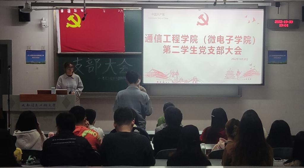 为贯彻落实《中国共产党发展党员工作细则》,加强党的基层组织建设,始终保持党员队伍的先进性。通信工程学院(微电子学院)于10月30日晚在H1207、H1208教室顺利开展学生党支部大会,本次大会由学生党员胡丽琴、钟运主持,支部全体党员参加。