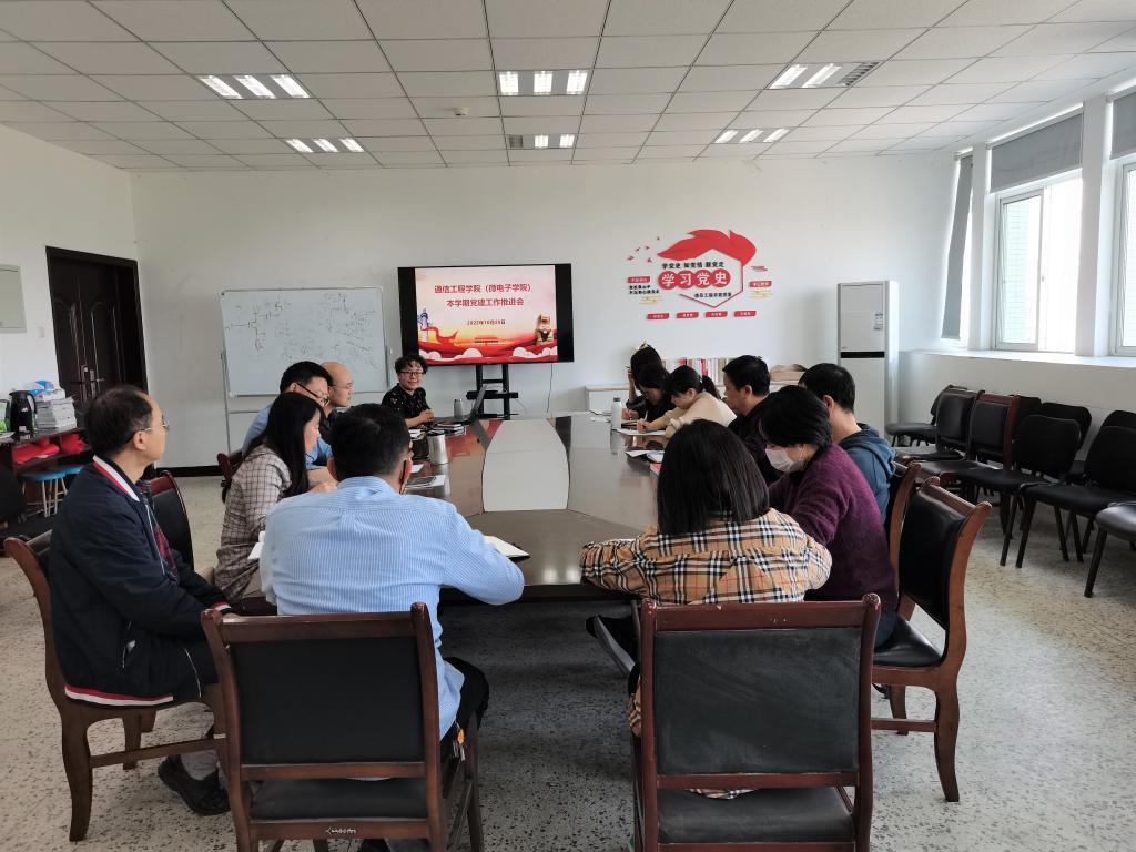 10月20日,通信工程学院(微电子学院)召开党建工作推进会,专题研究部署本学期党建工作,会议由学院党委书记马文英主持,学院党政班子成员、科级干部、各党支部书记参加了会议。
