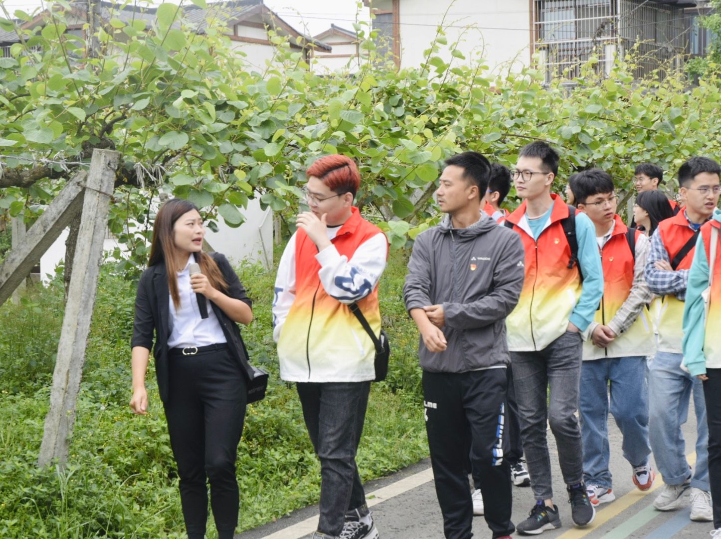 第一站是蒲江县红色乡村铜鼓村实地观摩。在村干部的陪同下,同学们参观了铜鼓村党群服务中心,现场了解了铜鼓村红色美丽村庄的建设情况,铜鼓村因地制宜、统筹联动,始终如一贯彻"红色引领,绿色发展"。穿行在一幢幢乡村小别墅间,同学们深刻感受到新时代新农村建设的丰硕成果,倍感生活在新时代的美好幸福。
