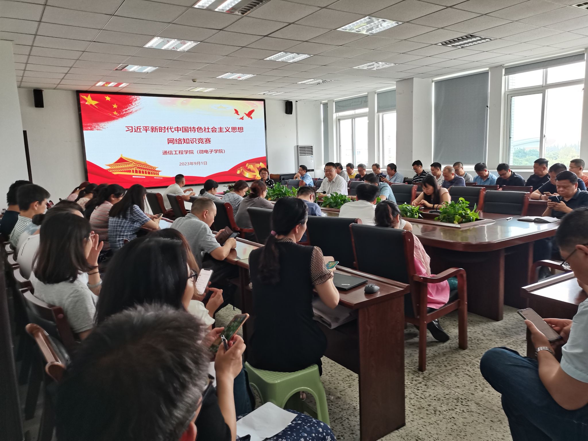 为扎实开展学习贯彻习近平新时代中国特色社会主义思想主题教育,推动理论学习常态长效,营造浓厚学习氛围,通信工程学院(微电子学院)党委于9月1日在信达楼A603会议室面向全院教职工集中开展开展习近平新时代中国特色社会主义思想网络知识竞赛。