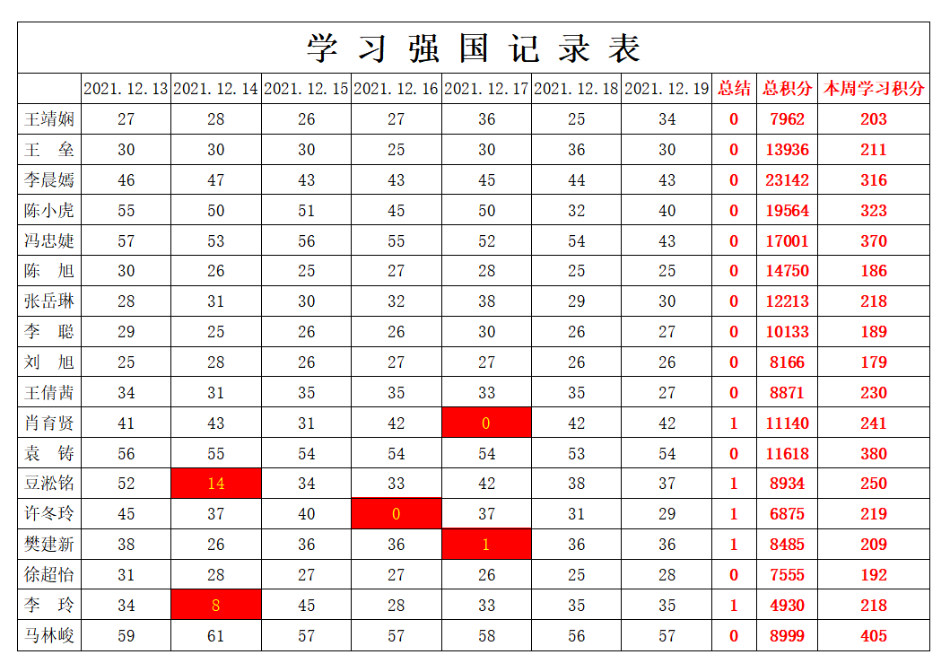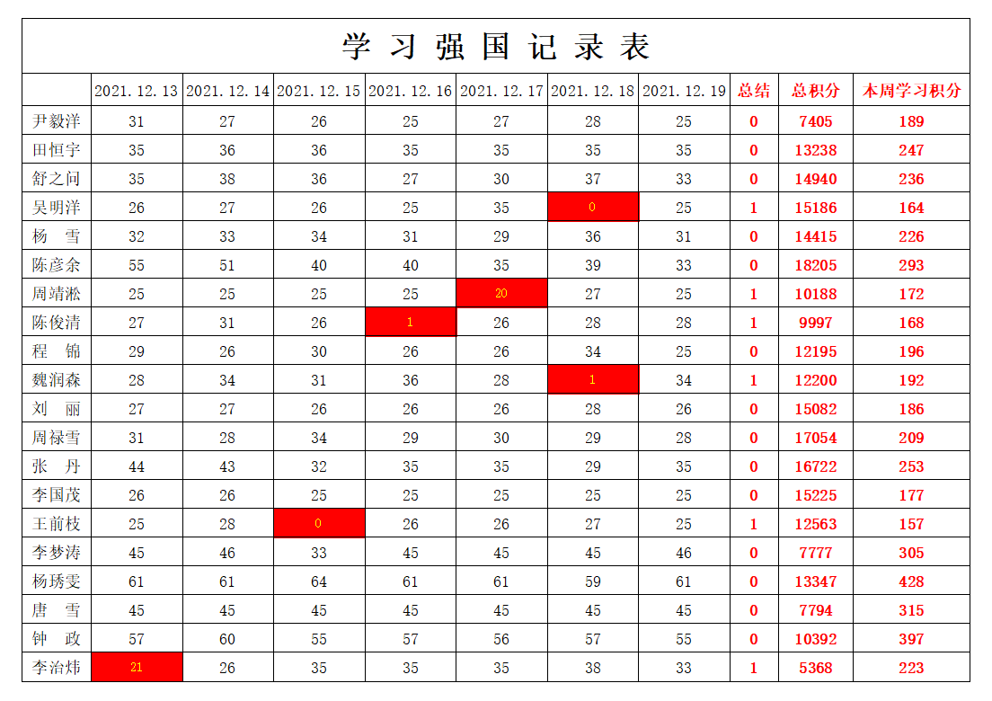 通信工程学院学生党支部2021-2022学年第一学期第十五周学习强国学习进度