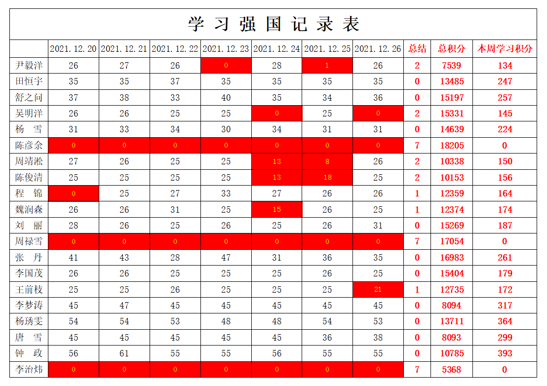 通信工程学院学生党支部2021-2022学年第一学期第十六周学习强国学习进度