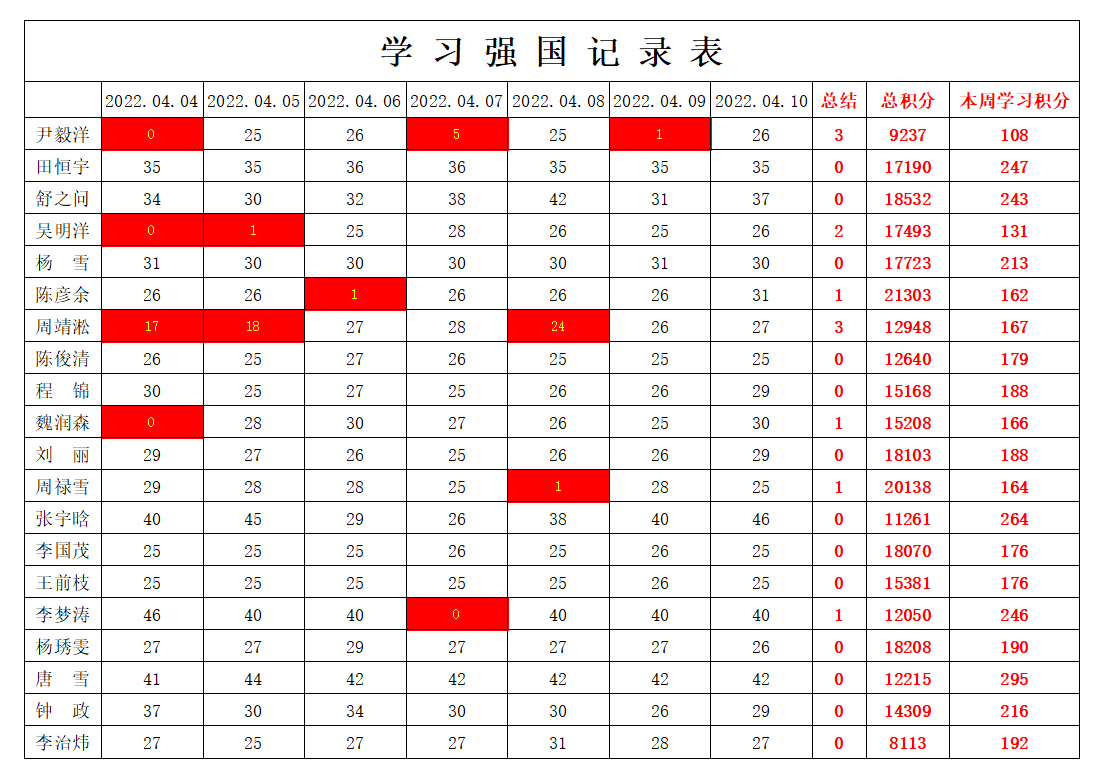 通信工程学院学生党支部2021-2022学年第二学期第七周学习强国学习进度