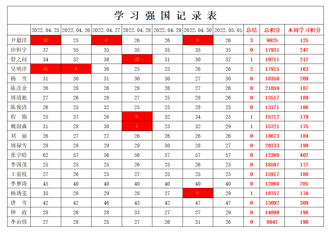 通信工程学院学生党支部2021-2022学年第二学期第十周学习强国学习进度