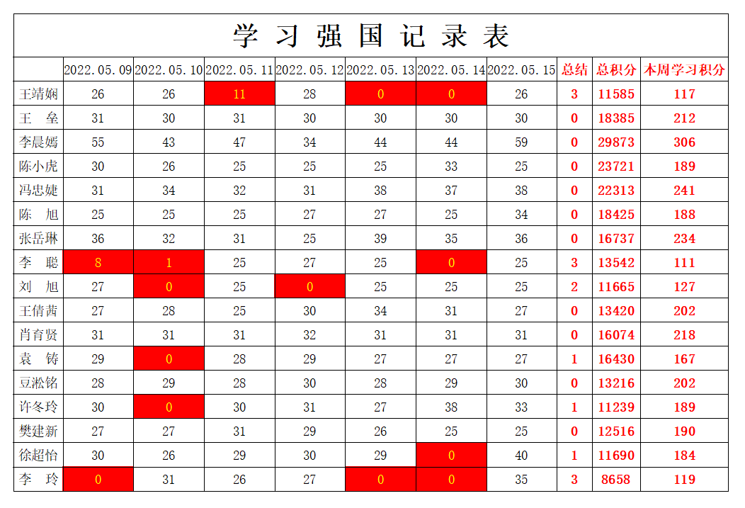 通信工程学院学生党支部2021-2022学年第二学期第十二周学习强国学习进度