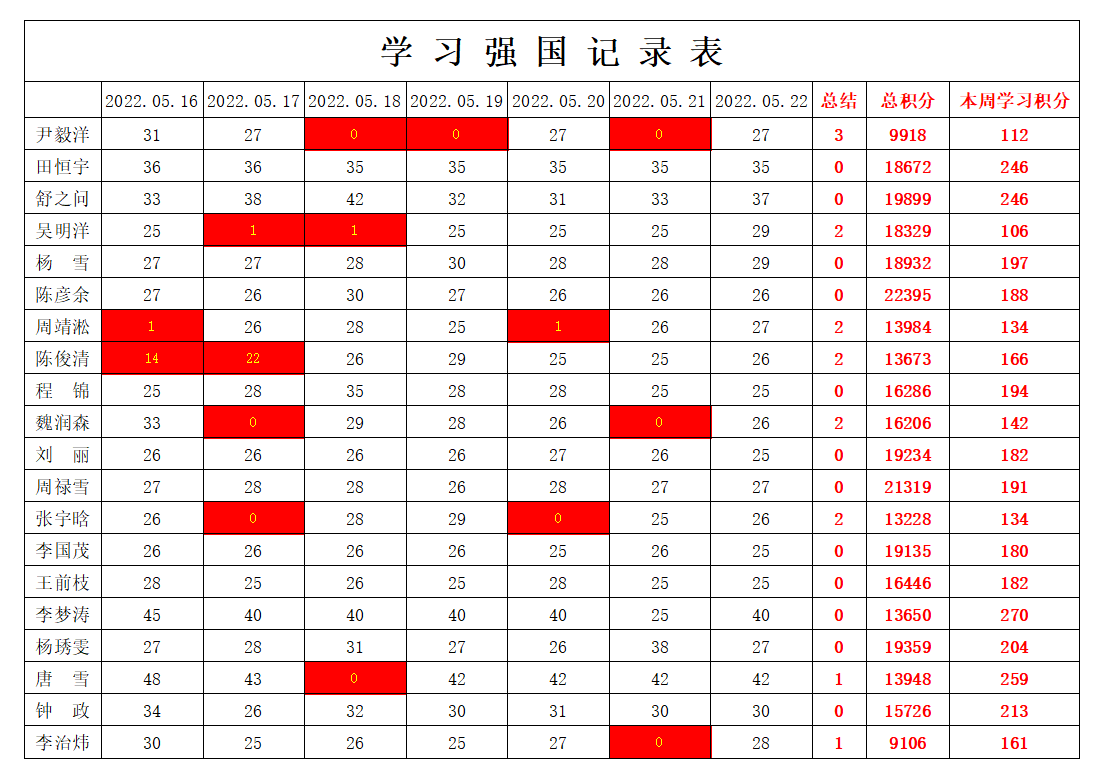 通信工程学院学生党支部2021-2022学年第二学期第十三周学习强国学习进度