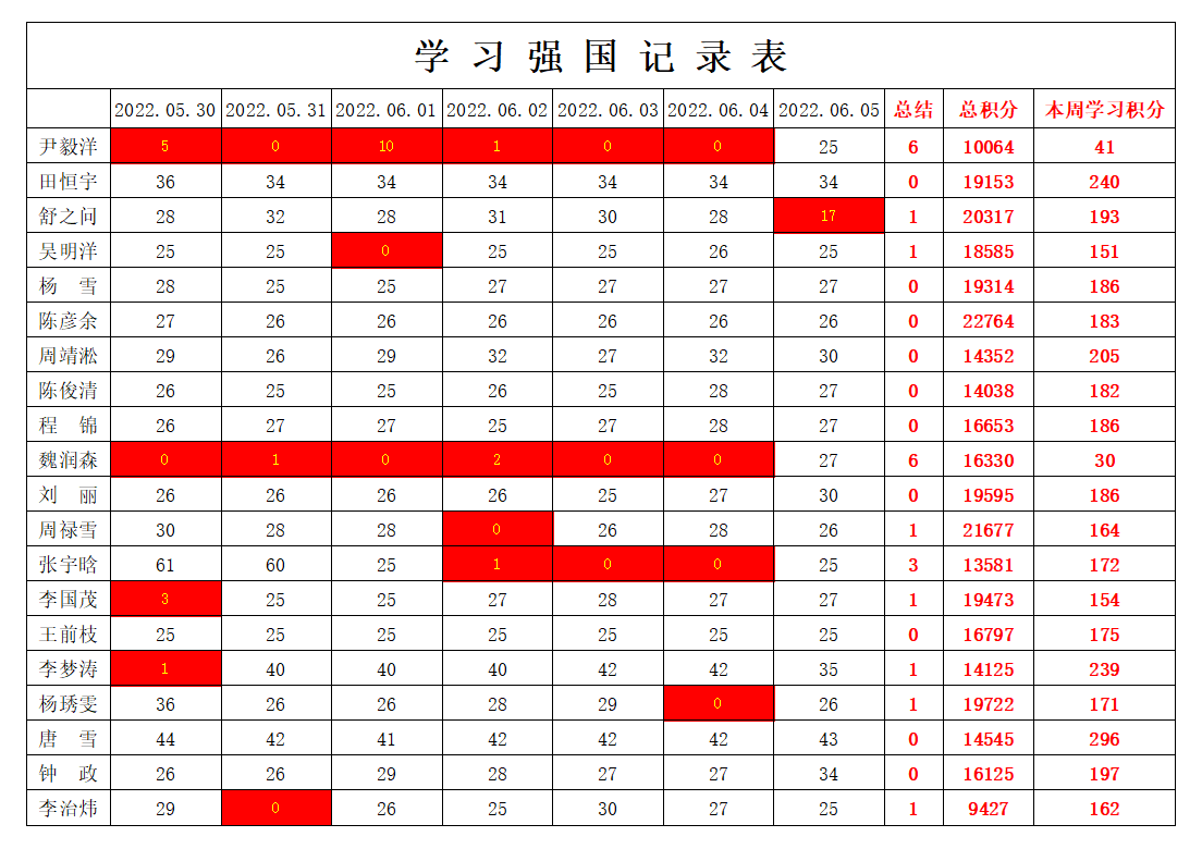 通信工程学院学生党支部2021-2022学年第二学期第十五周学习强国学习进度