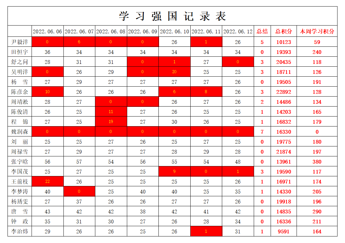 通信工程学院学生党支部2021-2022学年第二学期第十六周学习强国学习进度