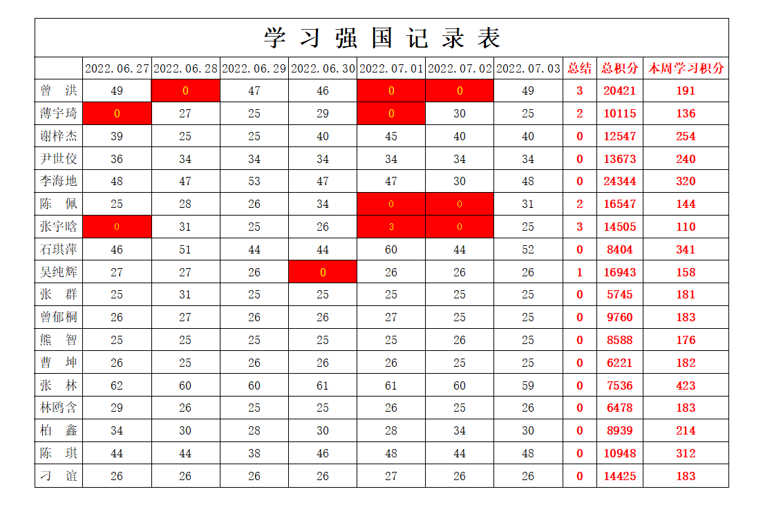 通信工程学院学生党支部2022年暑假第三周学习强国进度