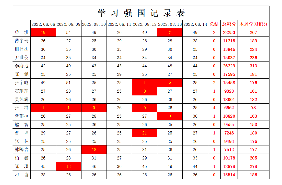 通信工程学院学生党支部2022年暑假第九周学习强国进度
