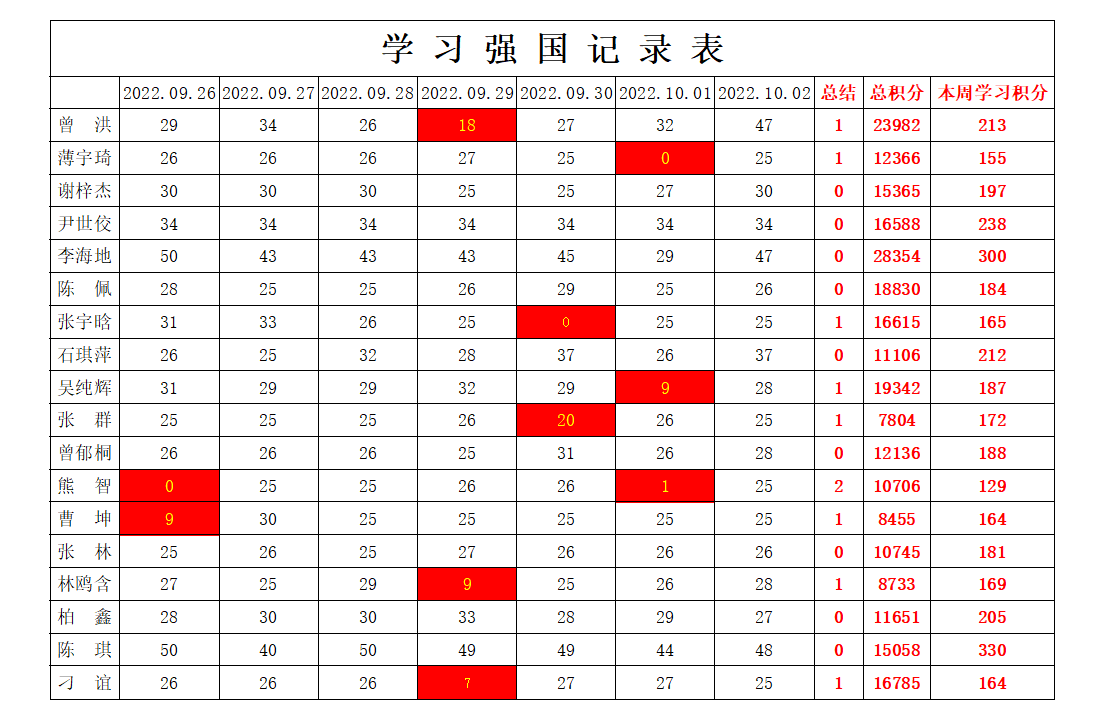 通信工程学院学生党支部2022-2023学年第一学期第三周学习强国学习进度