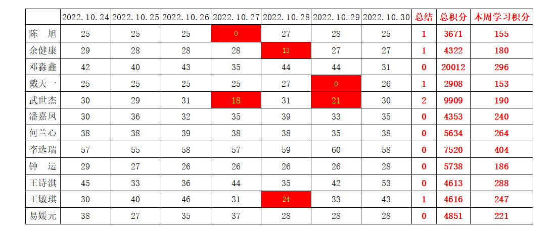 通信工程学院学生党支部2022-2023学年第一学期第七周学习强国学习进度