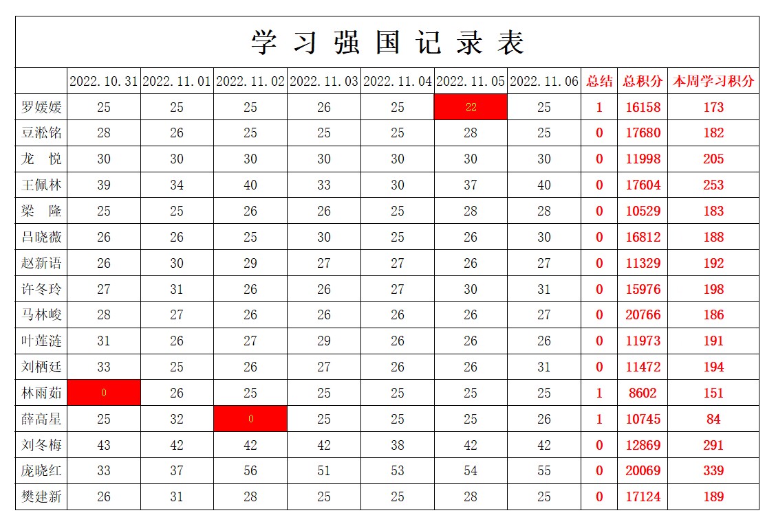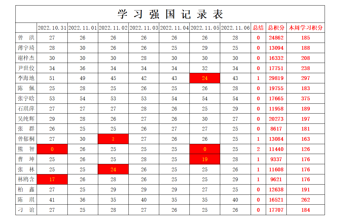 通信工程学院学生党支部2022-2023学年第一学期第八周学习强国学习进度