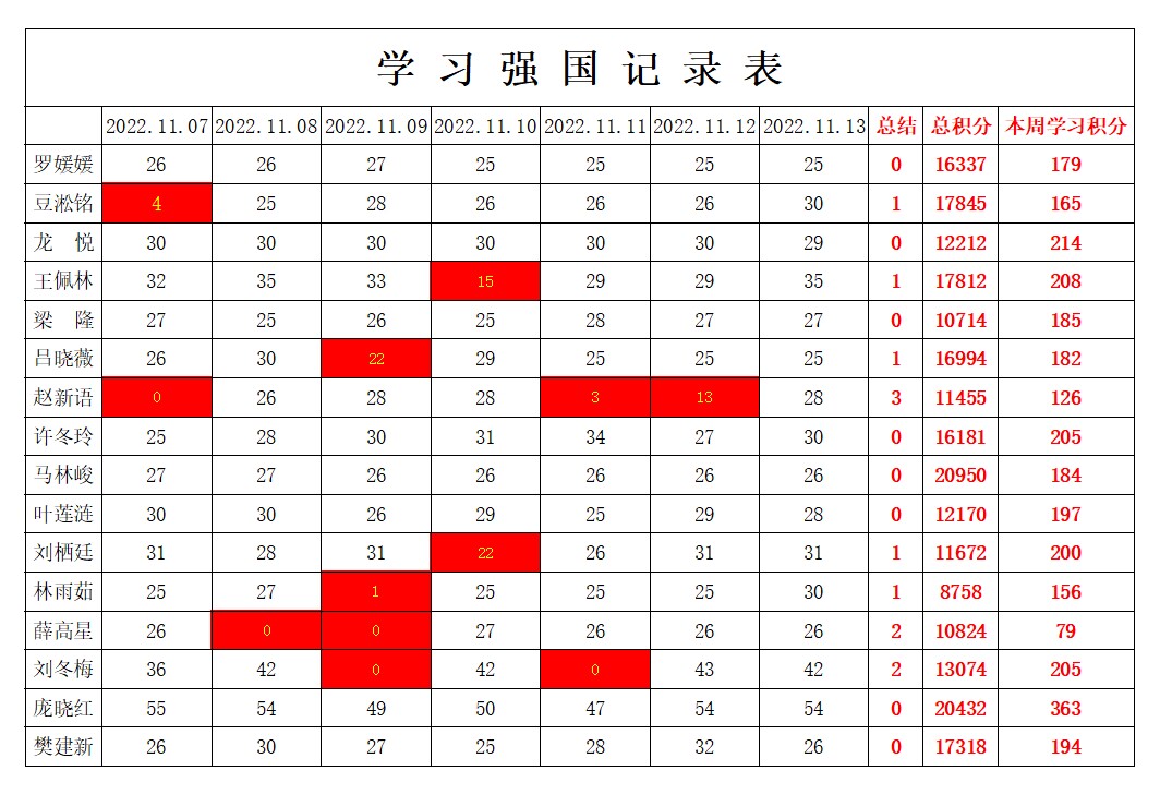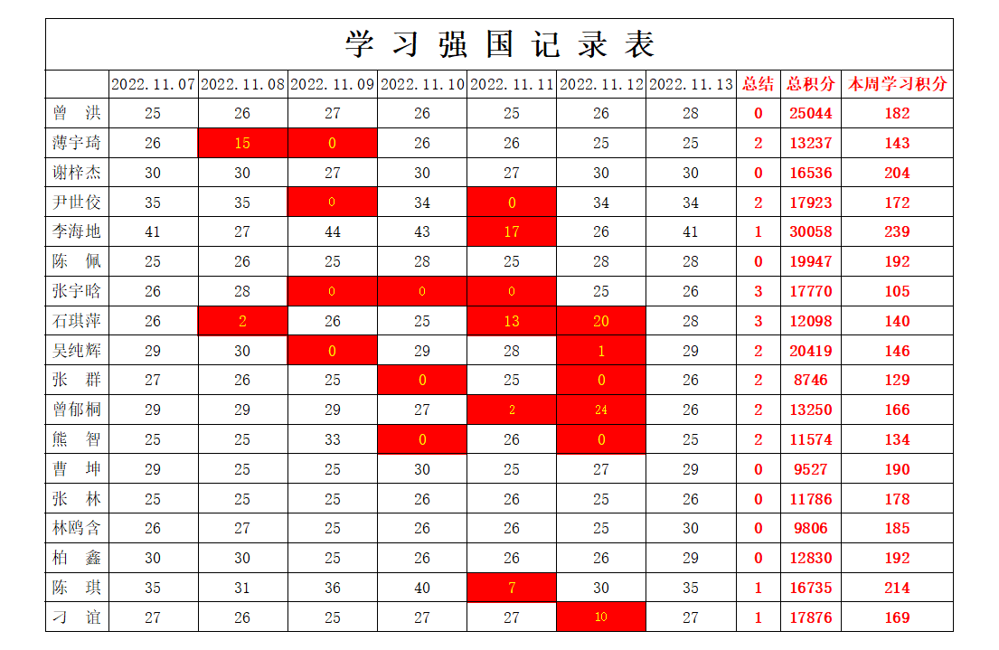 通信工程学院学生党支部2022-2023学年第一学期第九周学习强国学习进度