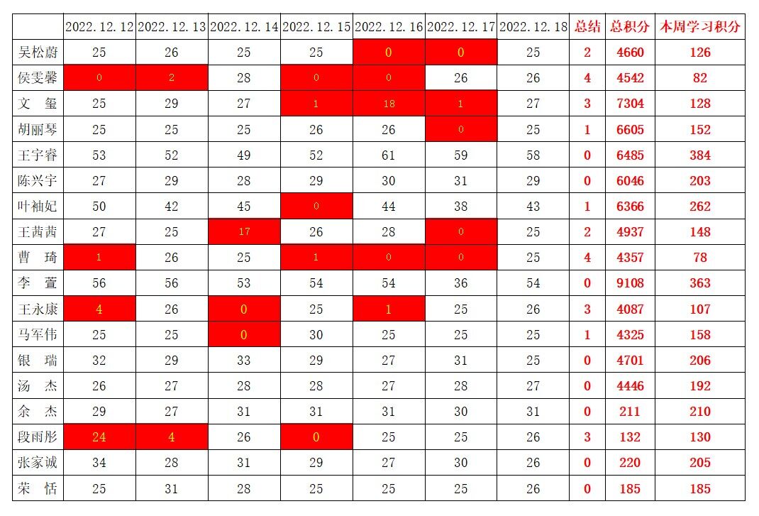 通信工程学院学生党支部2022-2023学年第一学期第十四周学习强国学习进度