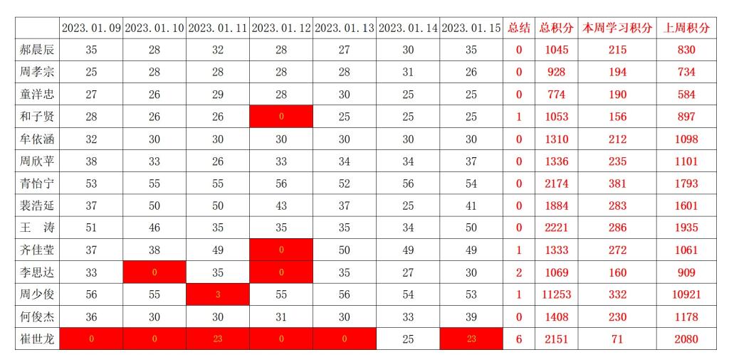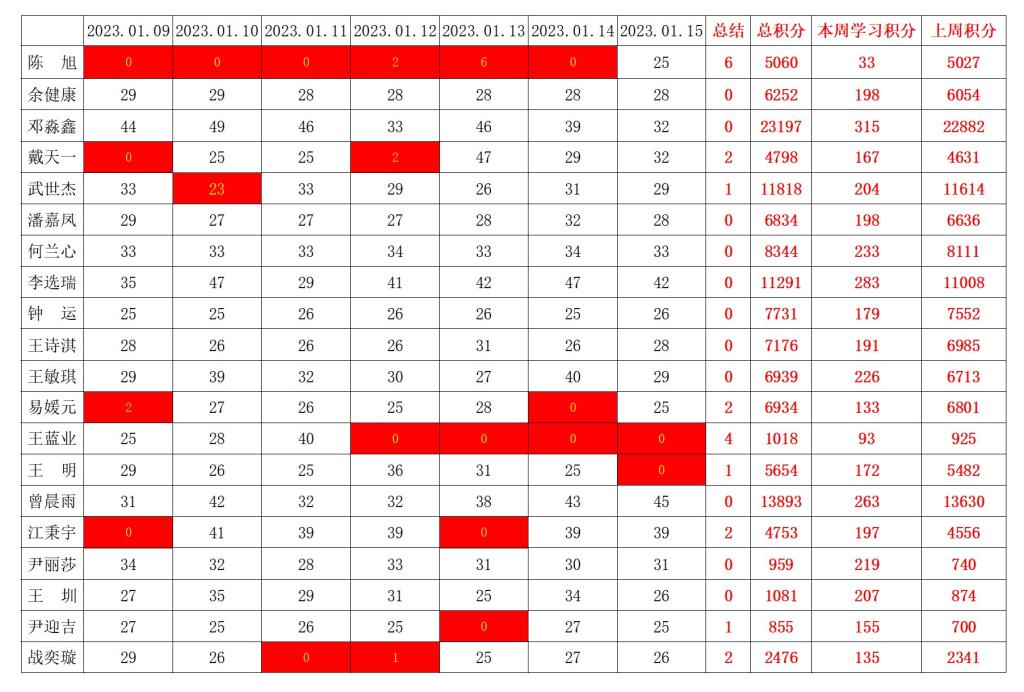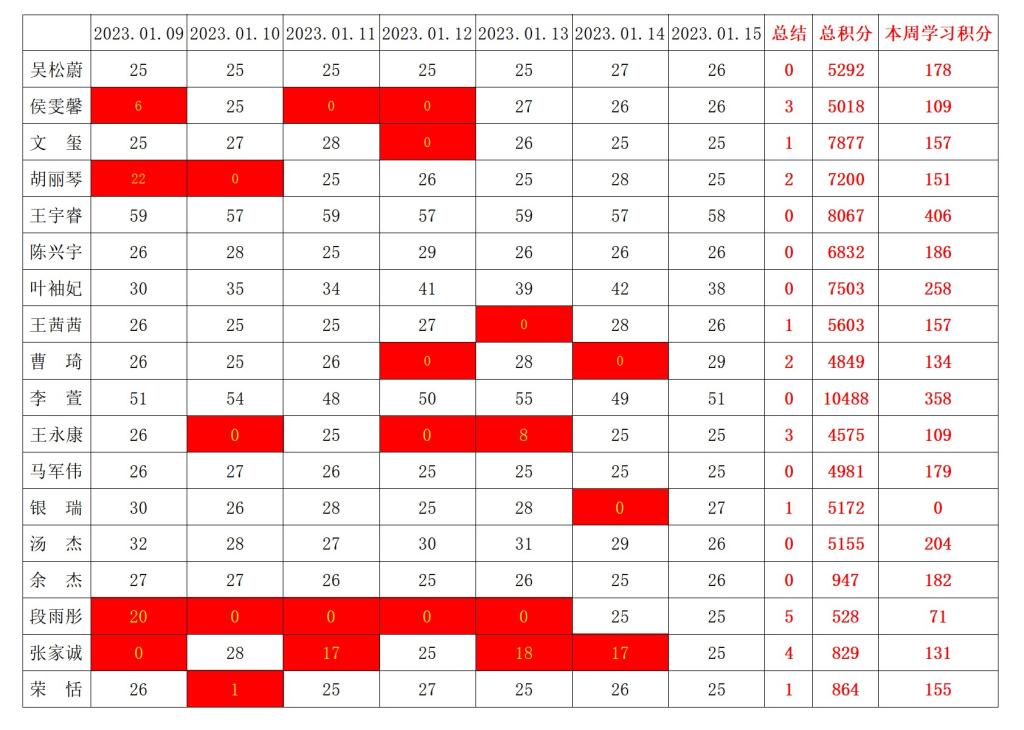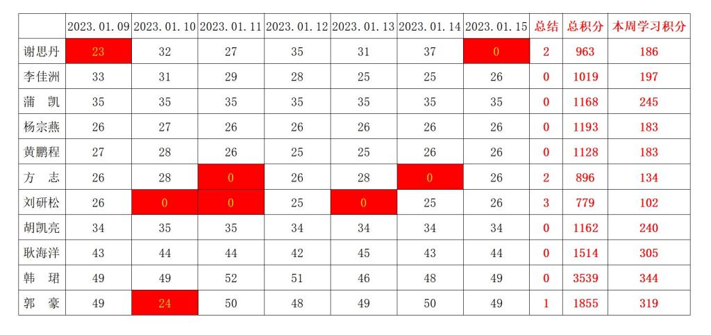 通信工程学院学生党支部2023年寒假第一周学习强国进度