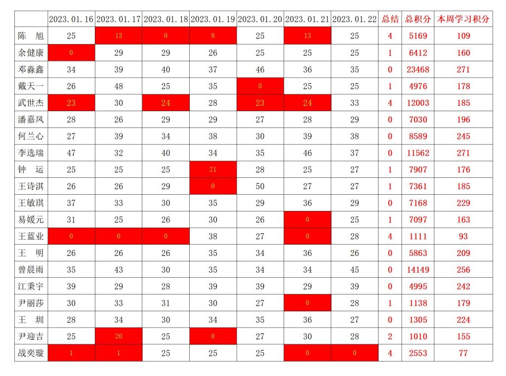 通信工程学院学生党支部2023年寒假第二周学习强国进度