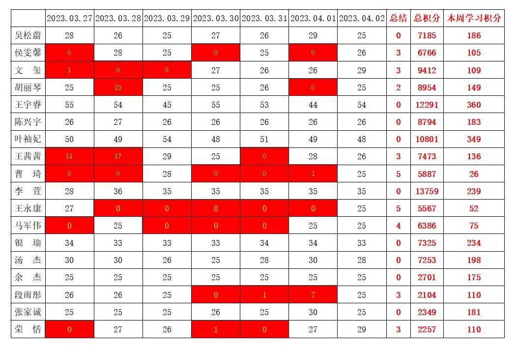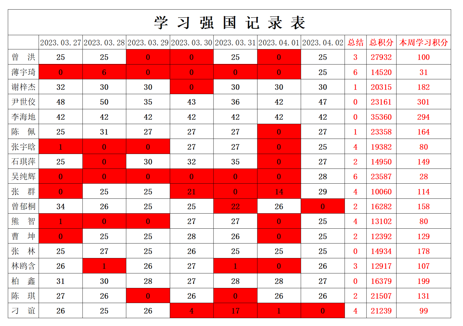 通信工程学院学生党支部2022-2023学年第二学期第六周学习强国学习进度