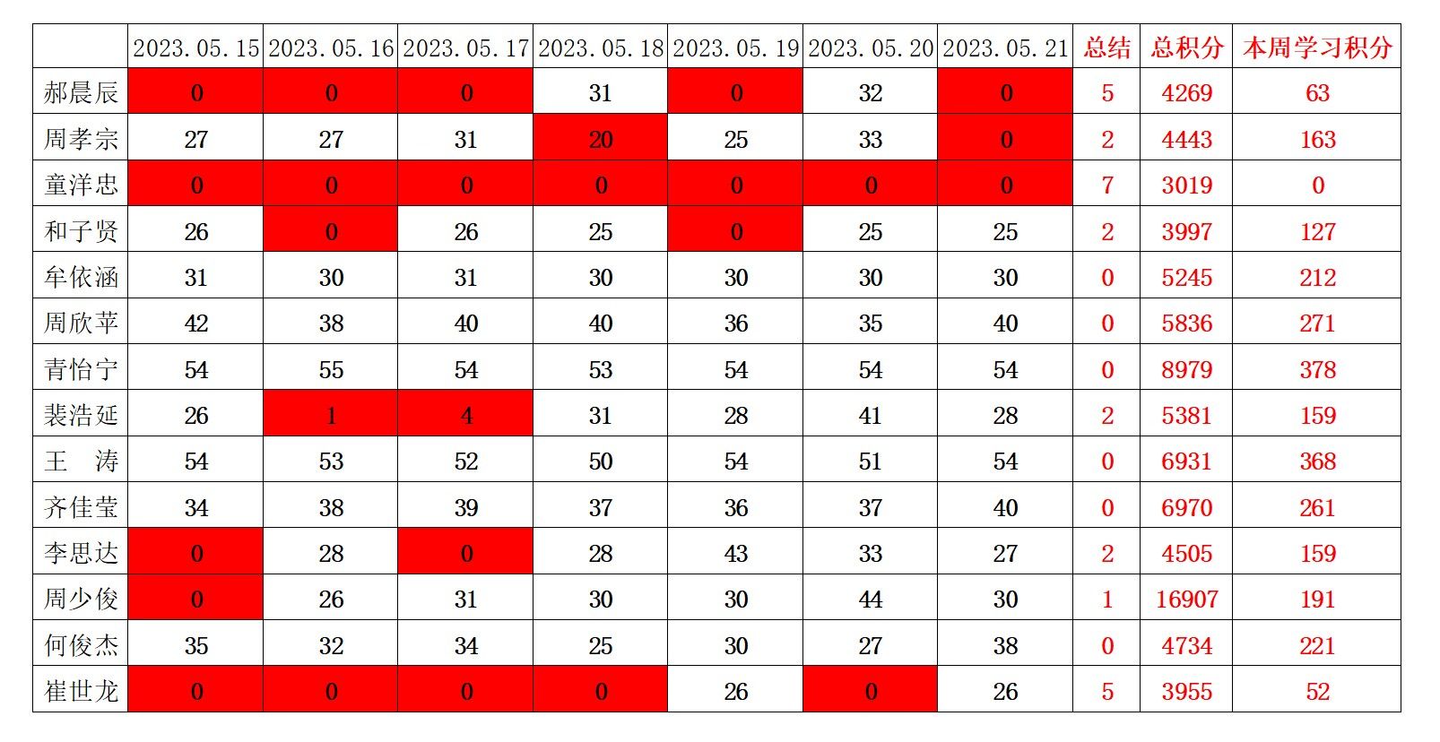 通信工程学院学生党支部2022-2023学年第二学期第十三周学习强国学习进度
