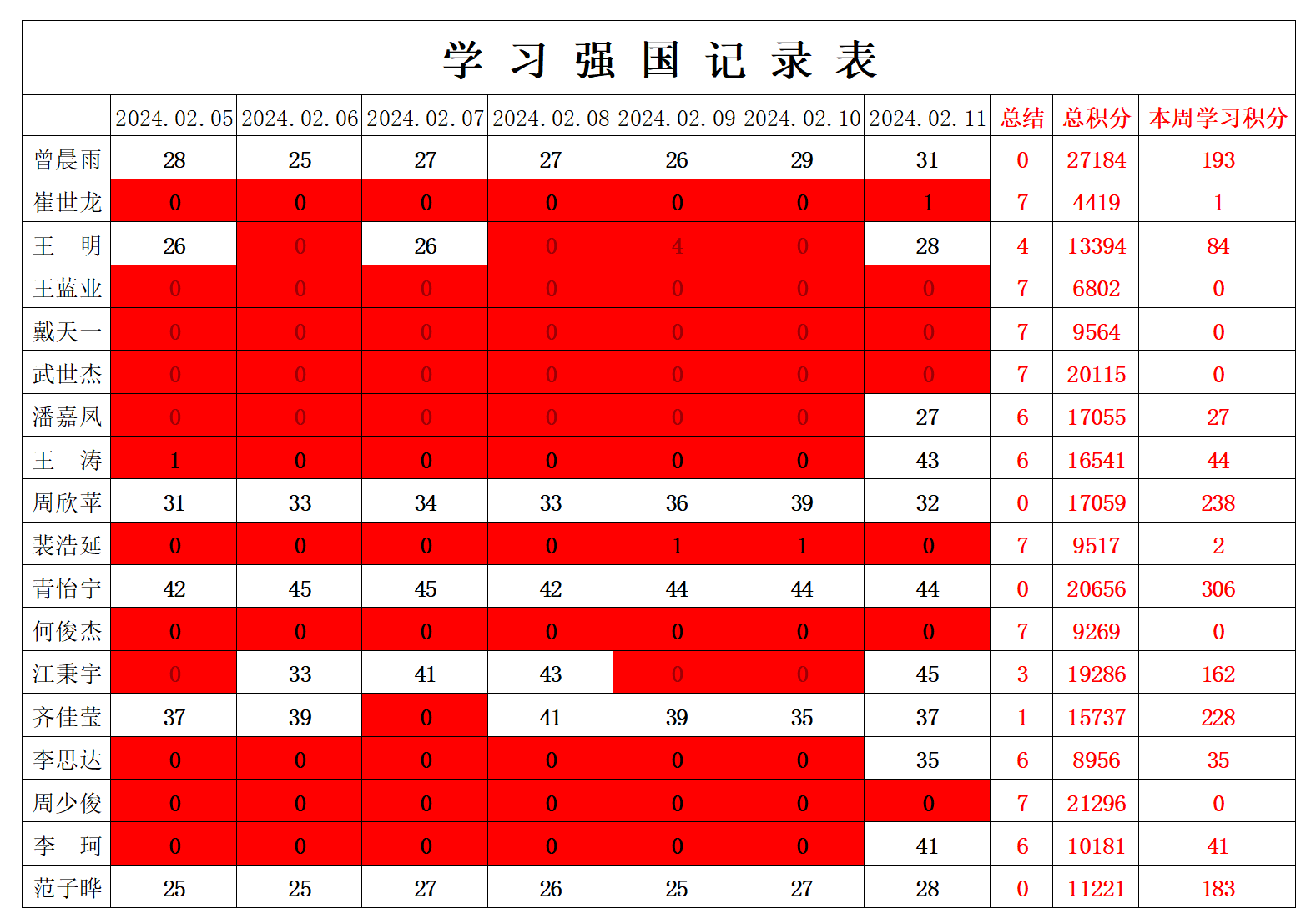 通信工程学院学生党支部2024年寒假第五周学习强国学习进度